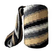 Mochila Arhuaca Mediana | «Origen de la Vida» tejida en lana de alpaca$350,000Mochila tejida a mano con lana nativa y el símbolo Urúmu. Representa el origen del universo y el camino espiritual que recorre la vida, según la tradición Arhuaca.