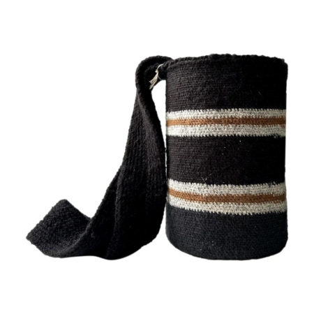 Inspirada en las montañas nevadas de la Sierra, esta mochila tejida en lana nativa representa la pureza del pensamiento, la fuerza del territorio y el equilibrio natural que habita en lo más alto.